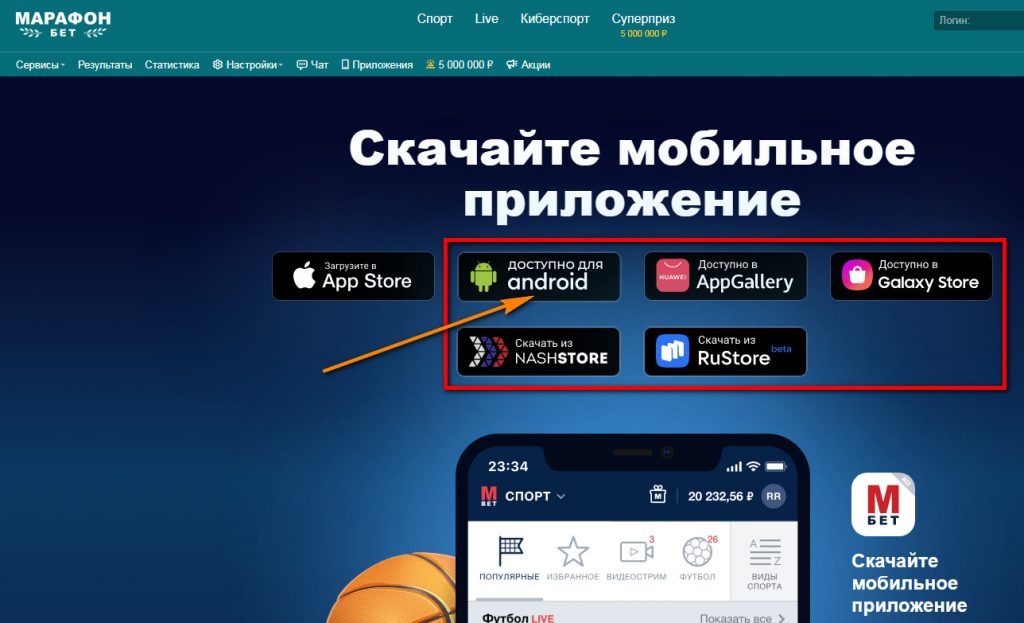 Как зарегистрироваться через мобильное приложение «МарафонБет» и начать делать ставки